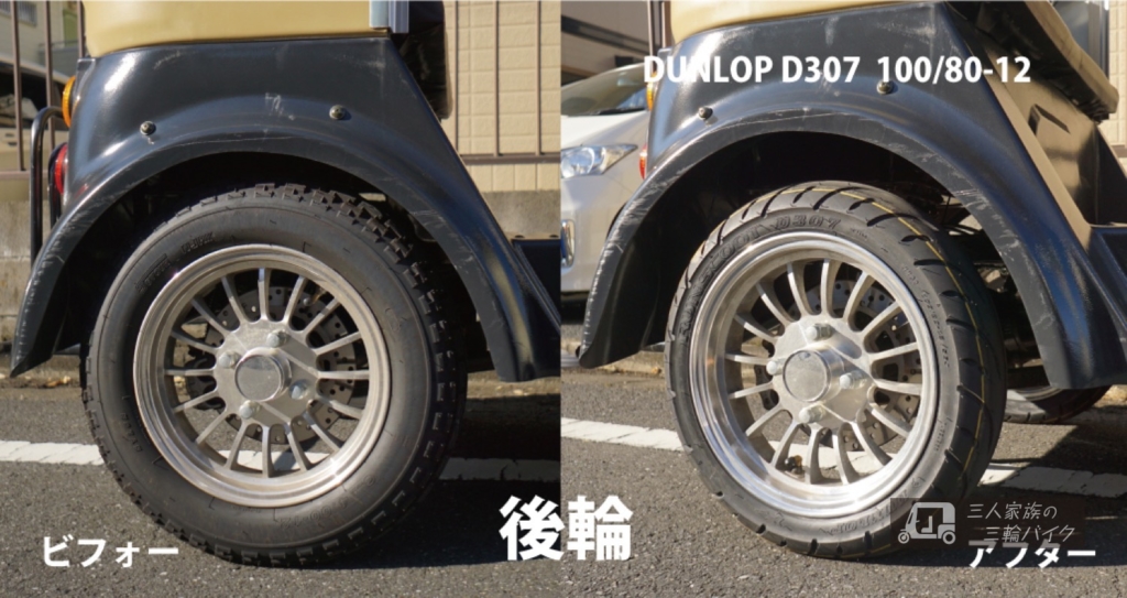 『DUNLOP D307 100/80-12』 というタイヤに交換する事にしました。