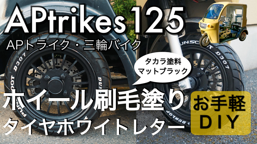 APtrikes125 ホイールのマットブラック刷毛塗りとホワイトレター お手軽DIY